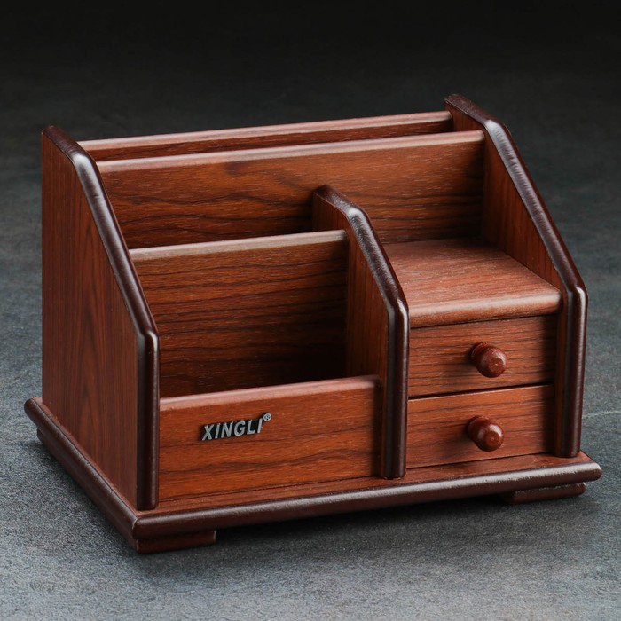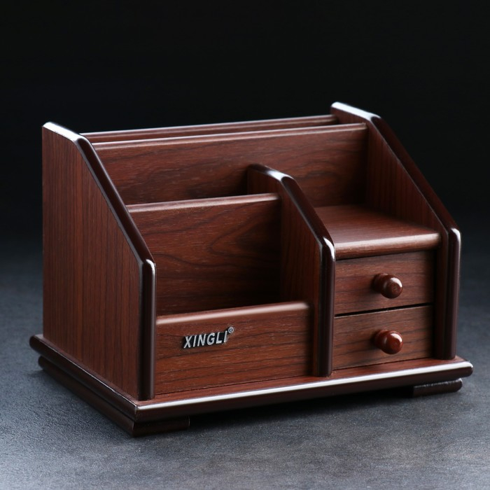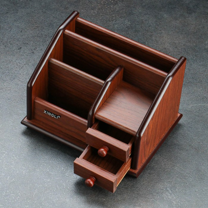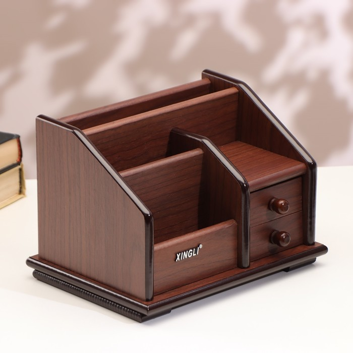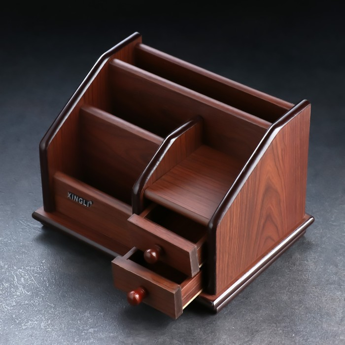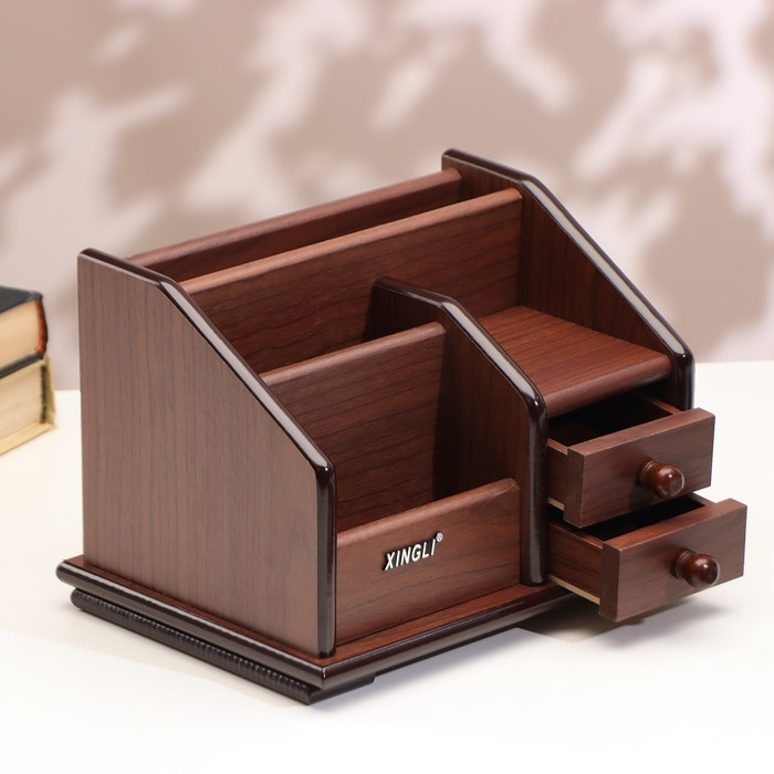 Органайзер 4 секции, 2 выдвижных ящика, серия Орех с кантом темным, микс 14*19