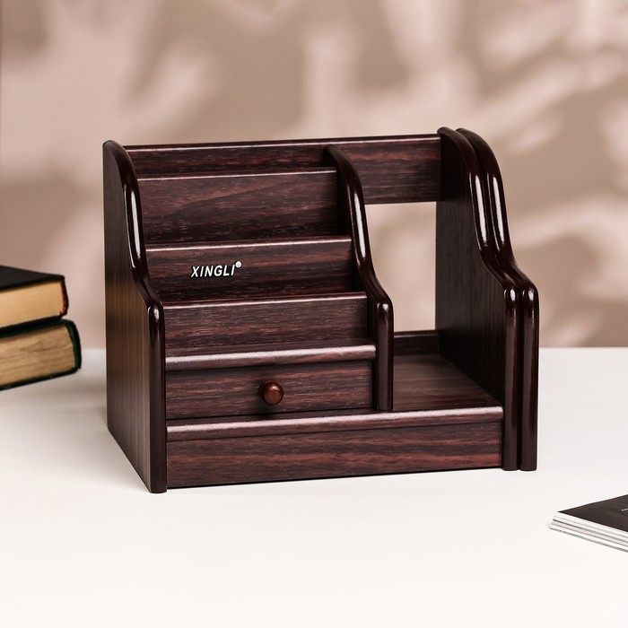 Органайзер 5 секций, 1 выдвиж ящик, 1 выдвиж полка, серия Ясень шимо темный с кантом темным