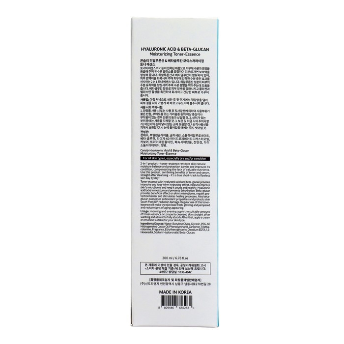 Увлажняющий тонер-эссенция Consly с гиалуроновой кислотой и бета-глюканом, объемом 200 мл, представляет собой косметический продукт, который разработан для увлажнения и ухода за кожей. Вот краткое описание данной тонер-эссенции: