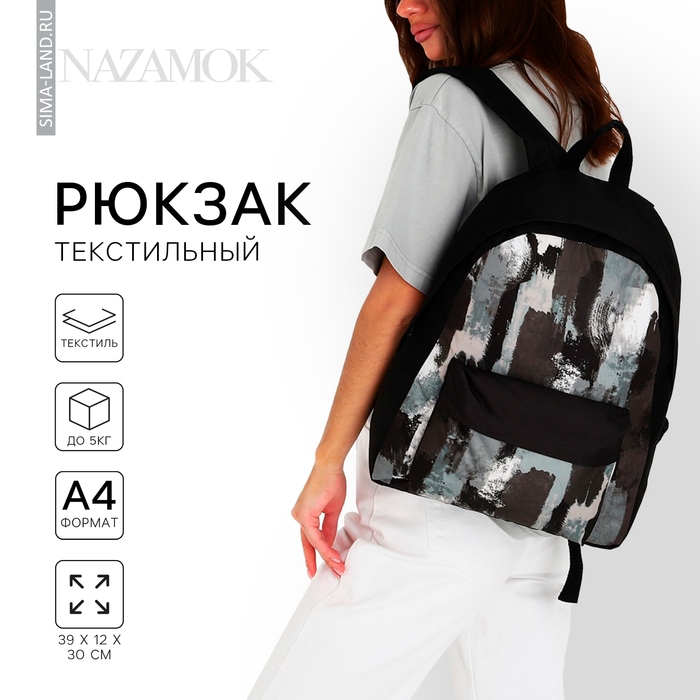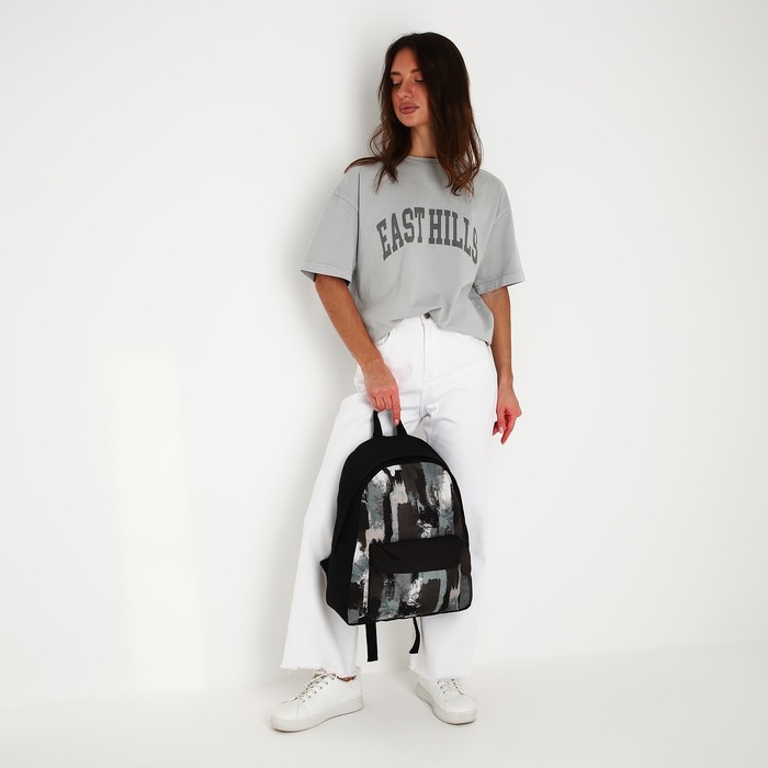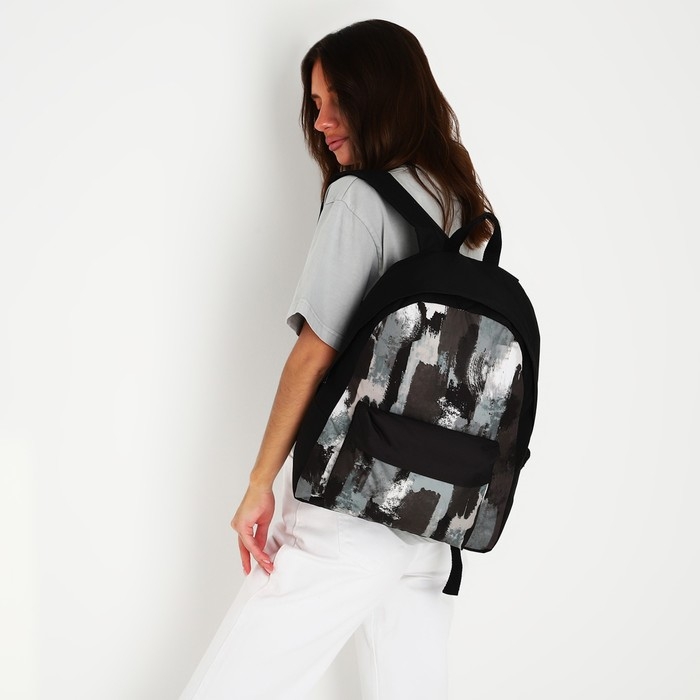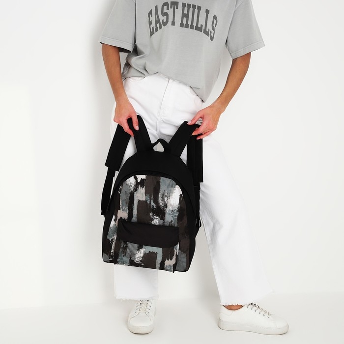 Рюкзак школьный текстильный «Хаки», с карманом, 30х12х40см, цвет чёрный