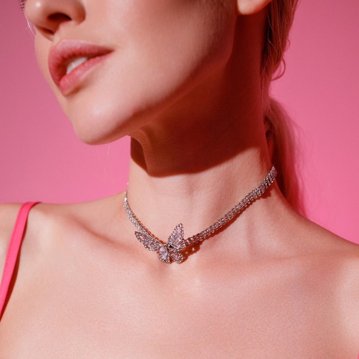 Чокер «Бабочка» крупная, цвет белый в серебре, 30 см