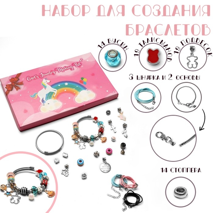 Набор для создания браслетов «Подарок для девочек», единорог, 71 предмет, цветной