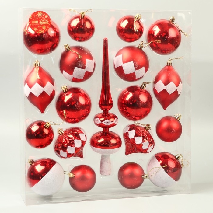 Набор украшений пластик 19 шт "Льдинки" красно-золотой