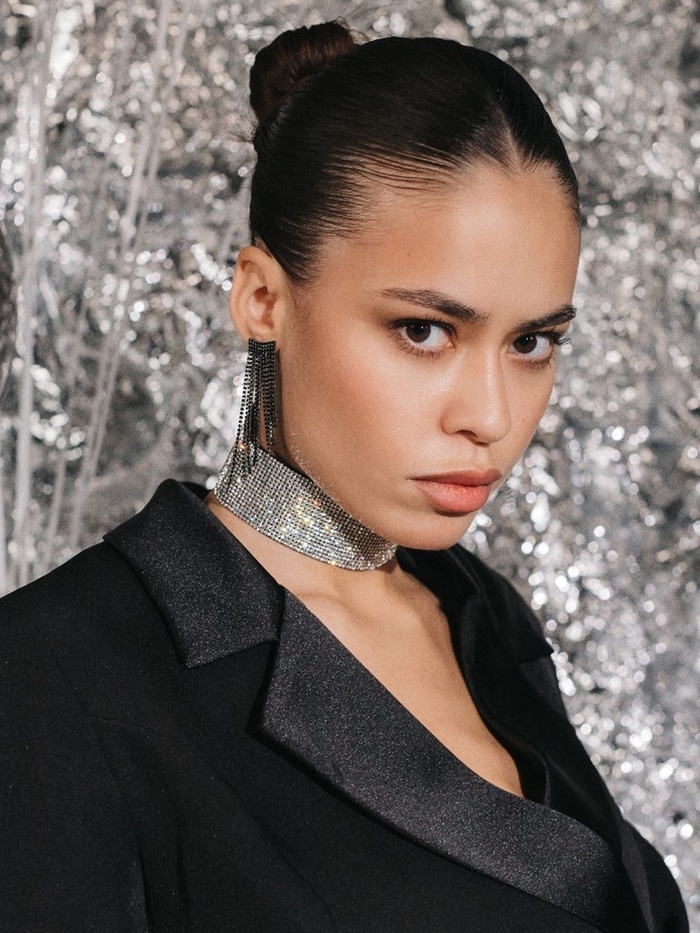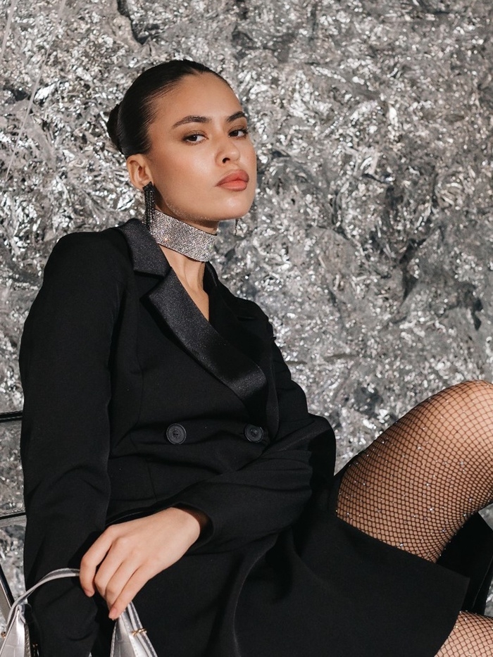 Чокер «Грация искры» широкий, цвет черно-серебряный, L=31 см