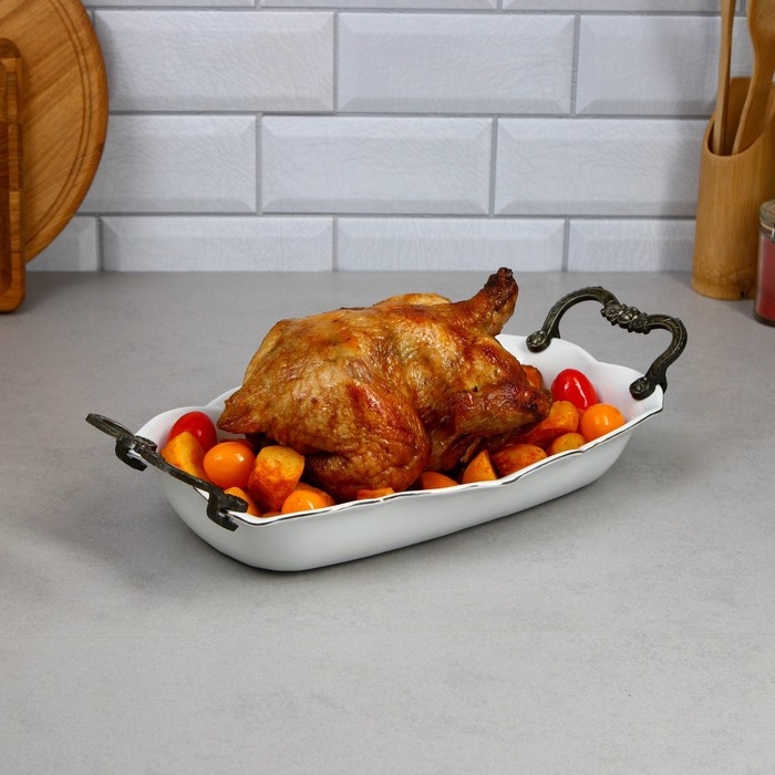 Блюдо «Роза», 1.8 л, прямоугольное, золотая обводка, фарфор, Иран