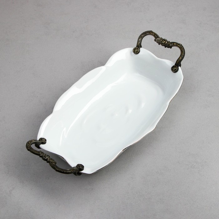 Блюдо фарфоровое овальное c утолщённым краем Доляна White Label, 30,5×20×3 см, цвет белый