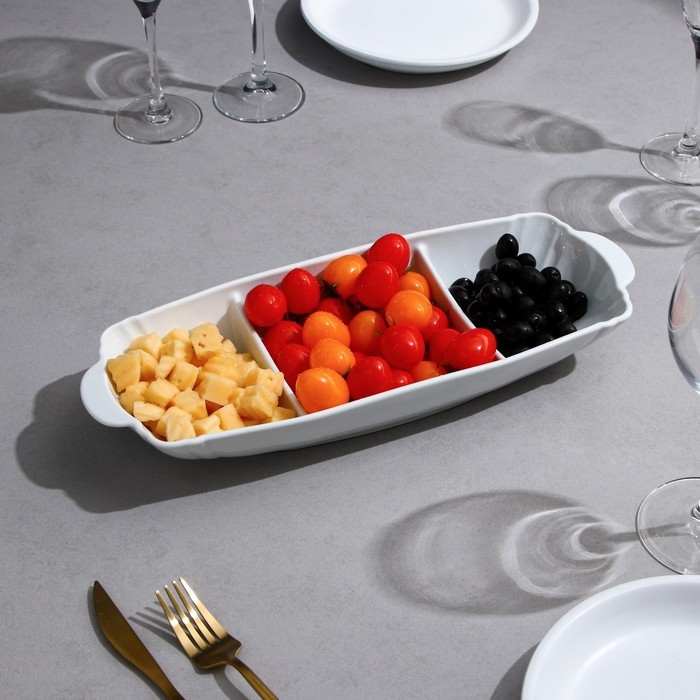 Элегантное фарфоровое блюдо - идеальный выбор для сервировки любых блюд. Блюдо из фарфора украсит любой стол и добавит изысканности вашей еде. Подходит для сервировки салатов, пасты, суши, закусок, а также холодца, рыбы, мяса и других блюд. Белый цвет и его гладкая текстура придают блюду изящный и элегантный вид, который подойдет для разных мероприятий и столовых сервировок. Также может использоваться в качестве декоративной подставки для фруктов, сыра и других украшений на вашем столе. Идеально подходит для сервировки различных явств на столе в кафе, ресторане, столовой или дома. Благодаря его форме и размеру, вы можете разнообразить ваше меню, включая нарезки, печенье, картофель фри, салаты, варенье, фрукты и сладости. Независимо от того, используется ли оно на свадьбе, вечеринке или просто для ужина в кругу семьи, это блюдо будет удачным выбором для подачи.