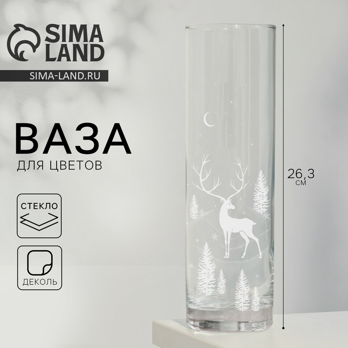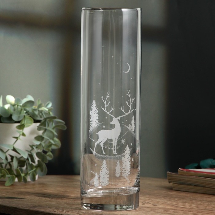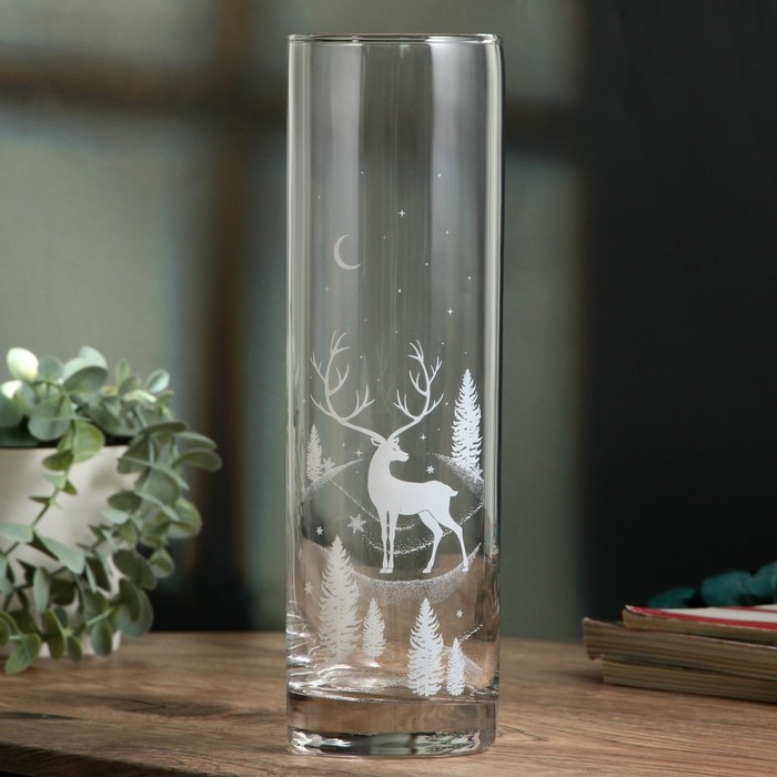 Ваза для цветов, новогодняя «Олень», на Новый год, стекло, высота 26,3 см