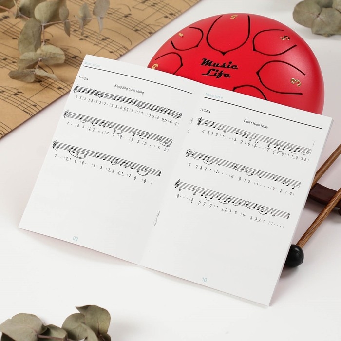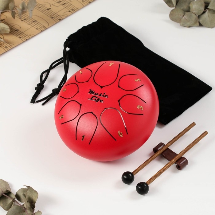 Глюкофон - музыкальный инструмент, красный, 8 лепестков, 15 х 9 см