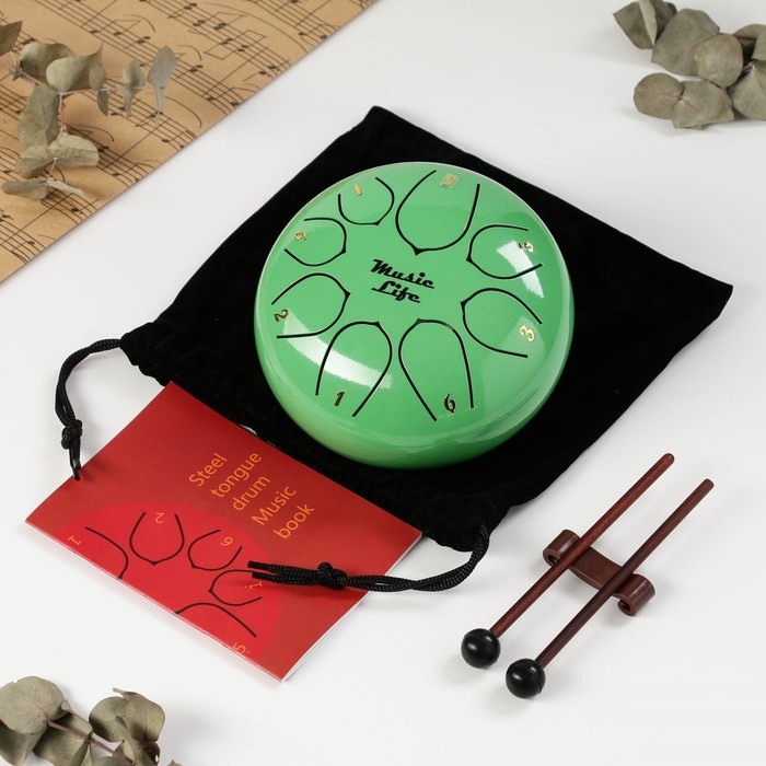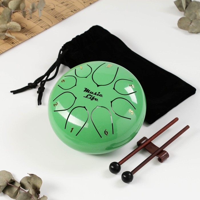 Глюкофон - музыкальный инструмент, зеленый, 8 лепестков, 15 х 9 см