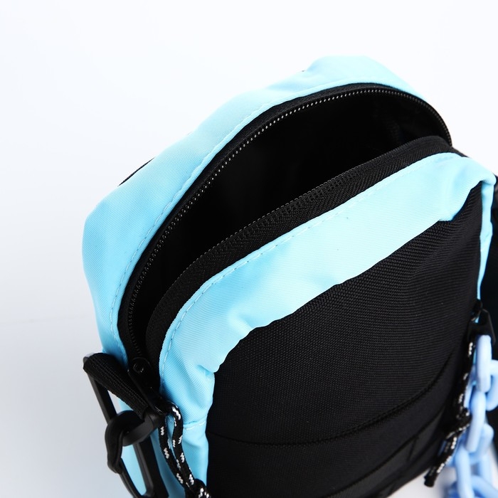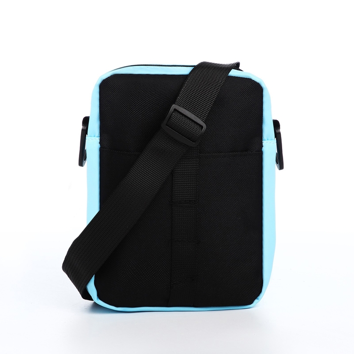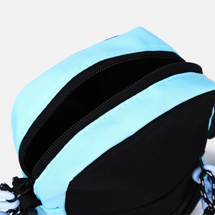 Сумка молодёжная на молнии, 1 наружный карман, цвет чёрный/голубой