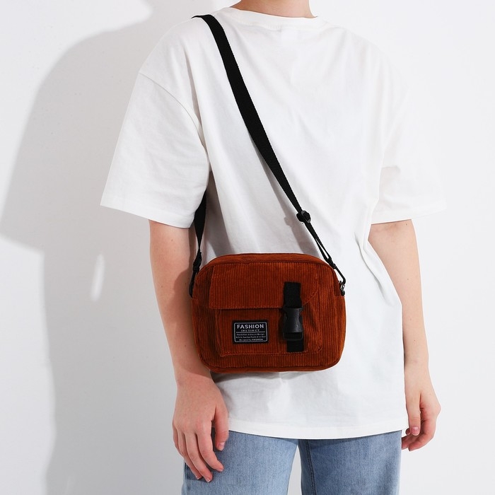Сумка молодёжная на молнии, 1 наружный карман, цвет коричневый