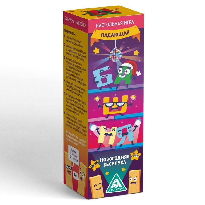 Новогодняя падающая башня «Новый год: Веселуха», 54 бруска и наклейки, 6+