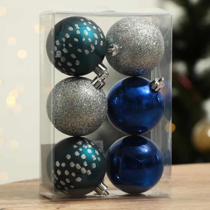 Шары ёлочные новогодние «Счастья!», на Новый год, пластик, d=6, 6 шт., цвет синий и серебристый