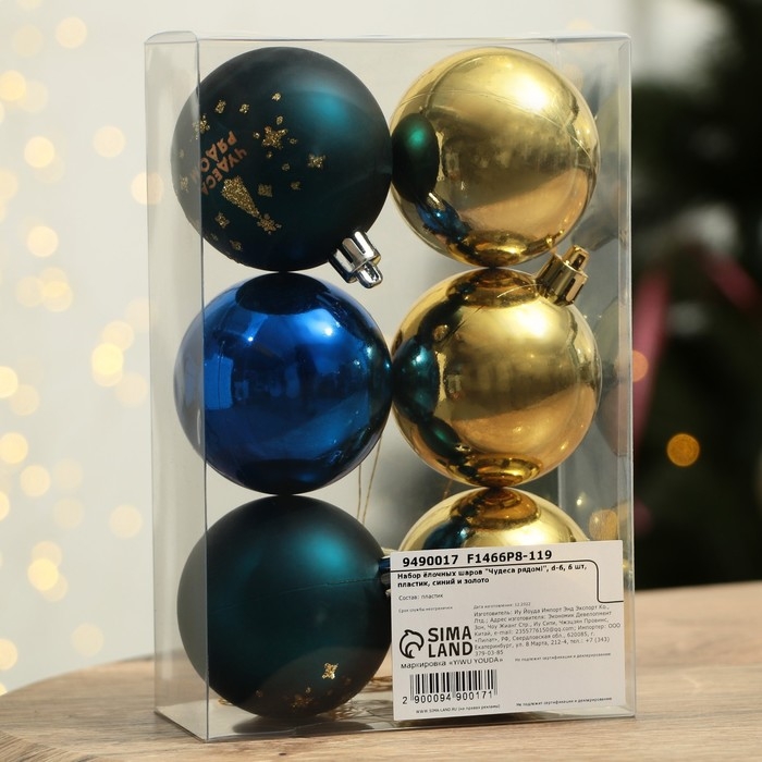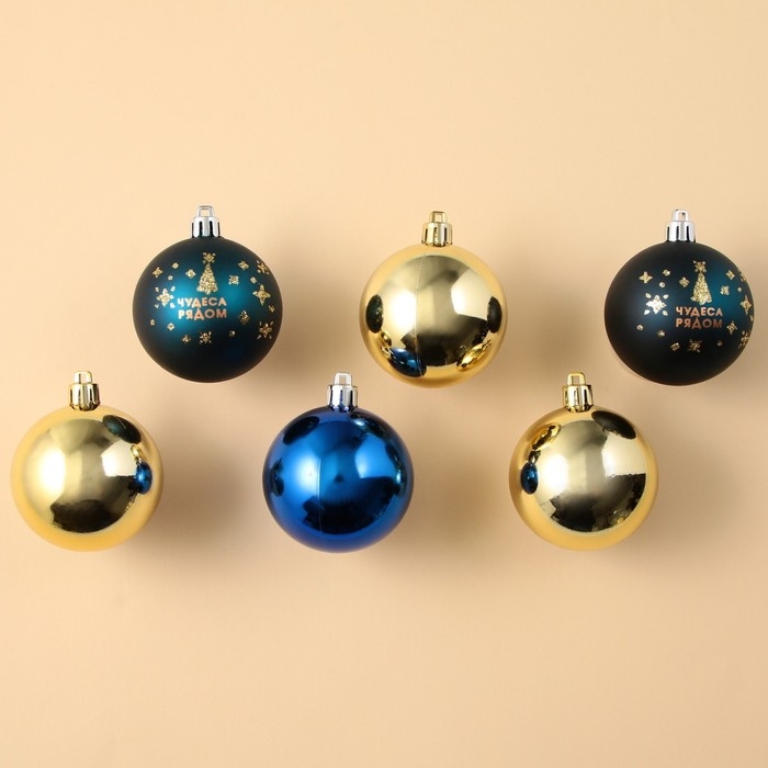 Шары ёлочные новогодние «Чудеса рядом!», на Новый год, пластик, d=6, 6 шт., цвет синий и золотой