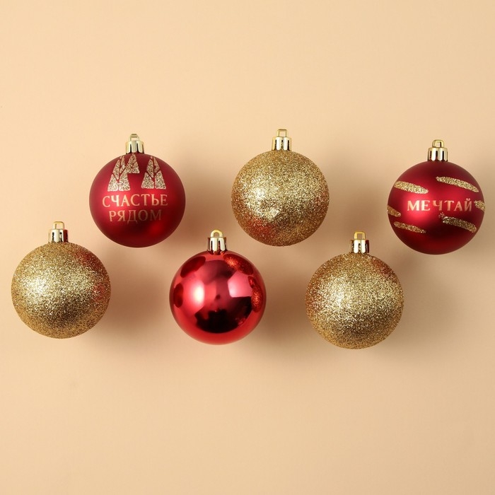 Шары ёлочные новогодние «Мечтай!!», на Новый год, пластик, d=6, 6 шт., цвет красный и золотой