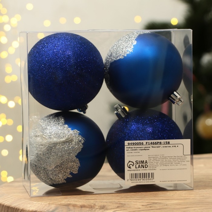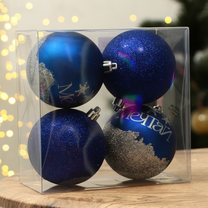 Шары ёлочные новогодние «Мечтай!», на Новый год, пластик, d=8, 4 шт., цвет синий с серебряным