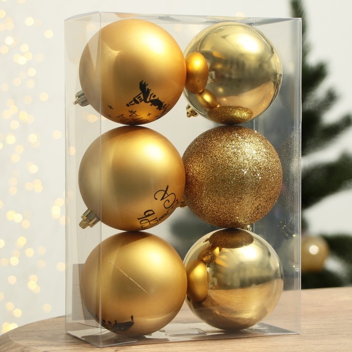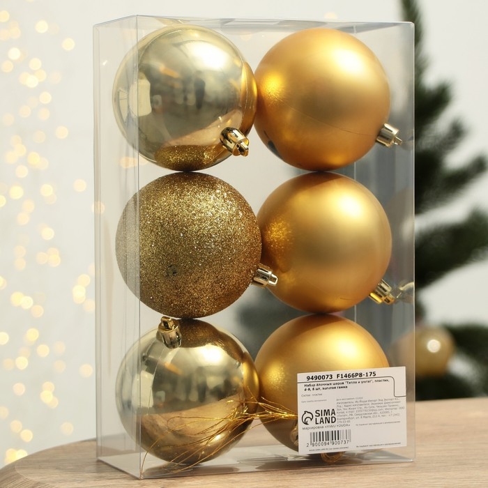 Шары ёлочные новогодние «Тепла и уюта!», на Новый год, пластик, d=8, 6 шт., цвет золотая гамма