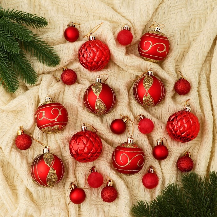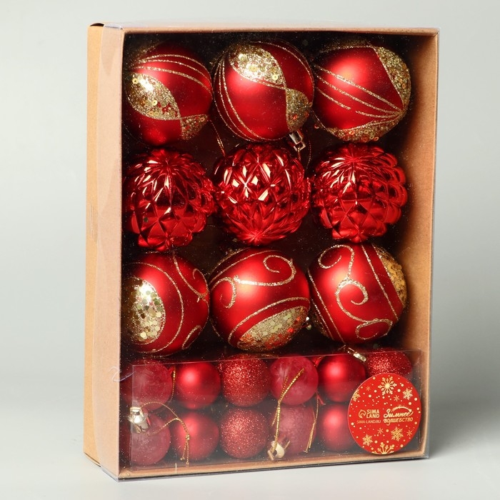 Набор шаров пластик d-2,5 и 5,5 см, 33 шт "Хоровод" красный