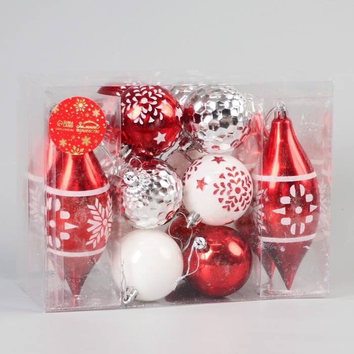 Набор украшений пластик 16 шт "Снежинки ассорти" d-5,5 см, сосулька 13,5 см, микс