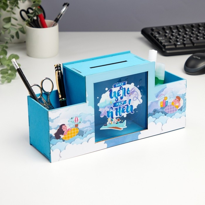 Органайзер для канцелярии с копилкой "Вижу цель, иду к ней!" 28х8,5х14 см