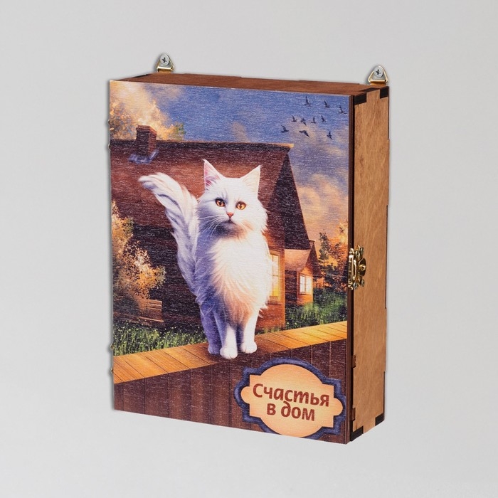 Ключница закрытая "Счастья в дом!" кошка, дом, 17х22х6 см