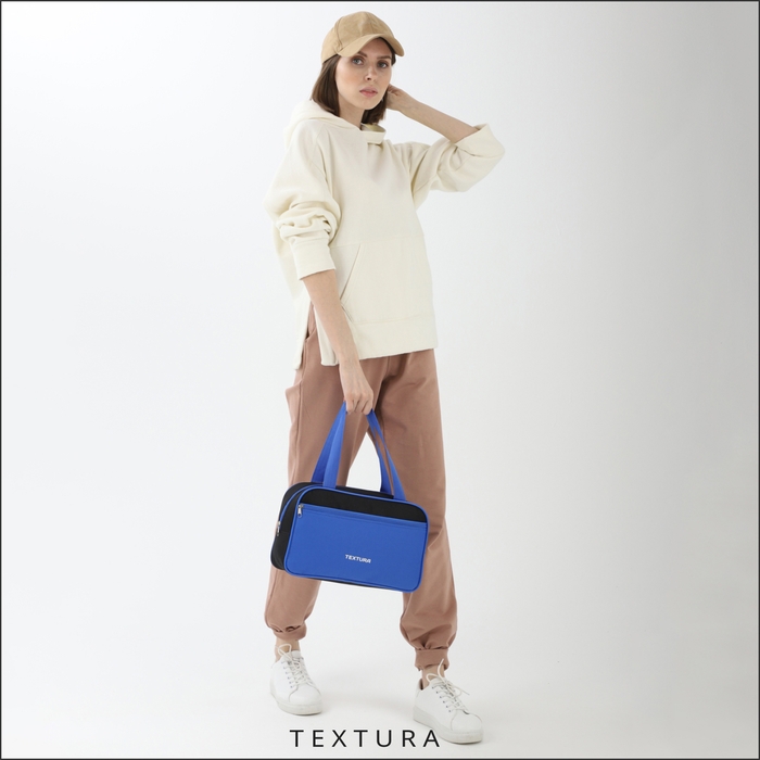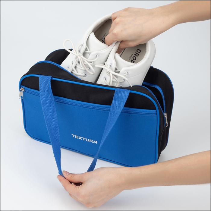Сумка для обуви на молнии, TEXTURA, наружный карман, цвет синий/чёрный