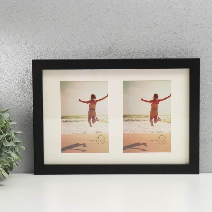 Фоторамка дерево, стекло на 2 фото 10х15 см "Паспарту" чёрная 2х23х33 см