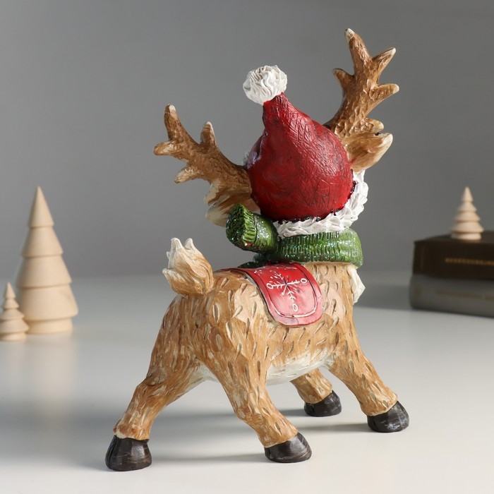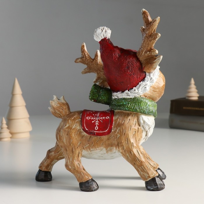 Сувенир полистоун "Олешка в красном колпаке и зелёном шарфике" 9,5х18,5х23,3 см