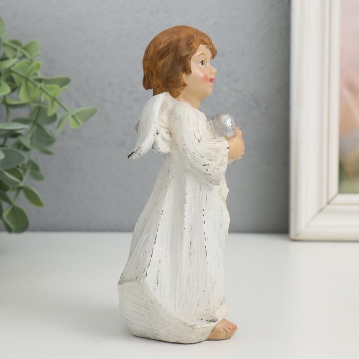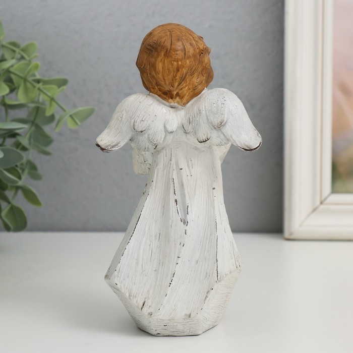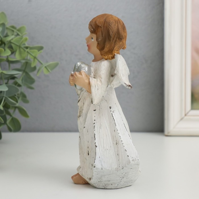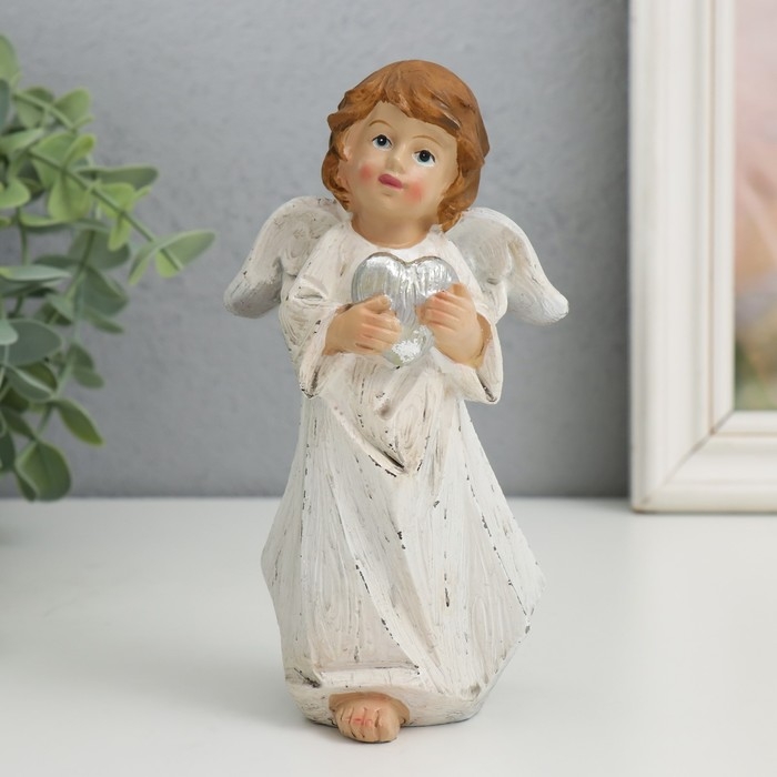 Сувенир полистоун "Ангел в бежевой тоге с сердечком" 6х8,5х16 см