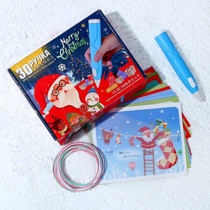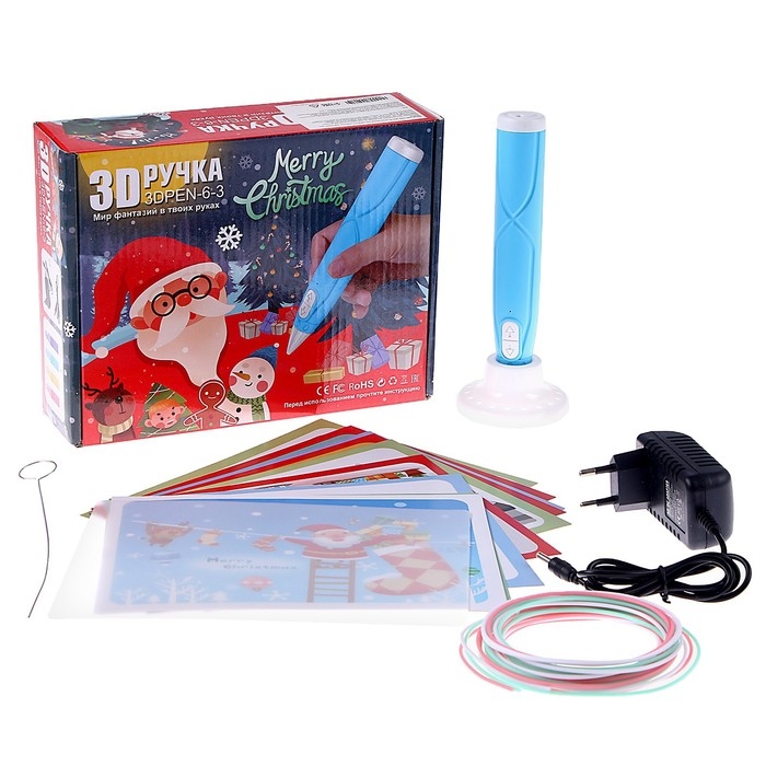 3D ручка «Новый год» набор PСL пластика, мод. PN005, цвет голубой