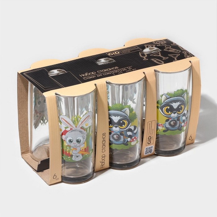Набор стаканов «Веселые зверюшки», стеклянный, 230 мл, рисунок микс