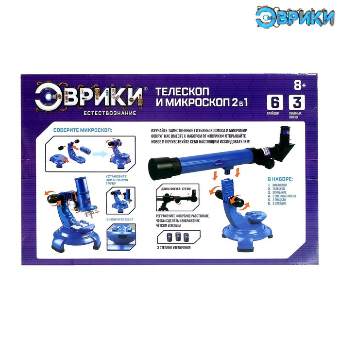Набор учёного «Телескоп+Микроскоп», 3-х кратное увеличение, световые эффекты, работает от батареек