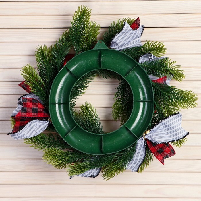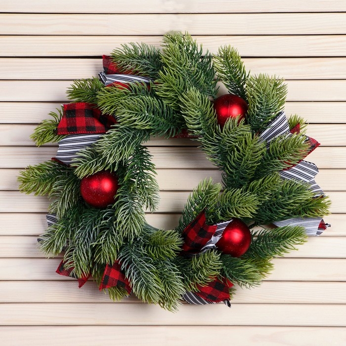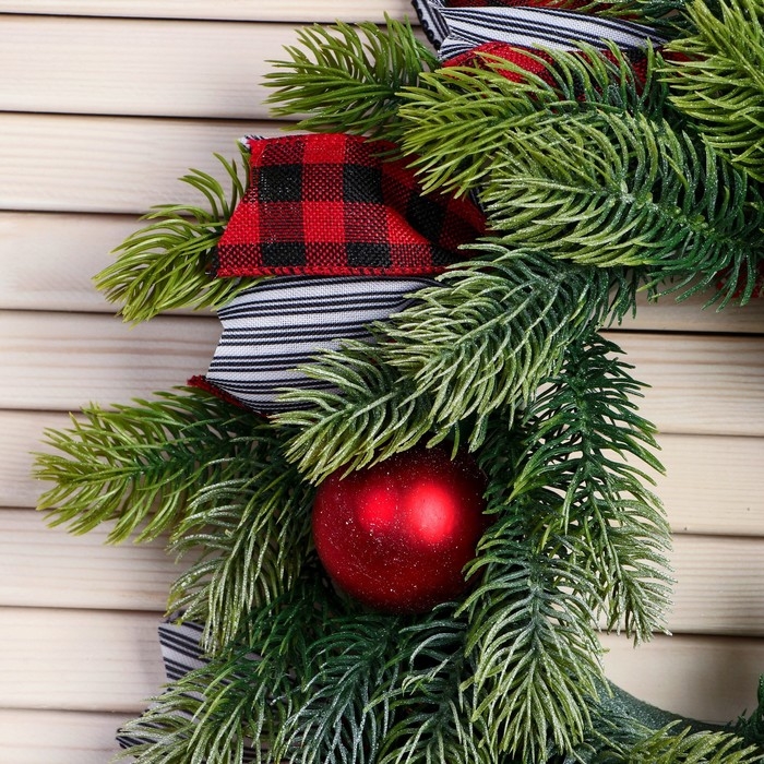 Венок новогодний d- 30 см "Уютная сказка" полосатые ленты шары