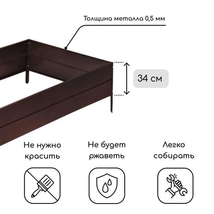 Грядка оцинкованная, 195 × 100 × 34 см, коричневая, Greengo