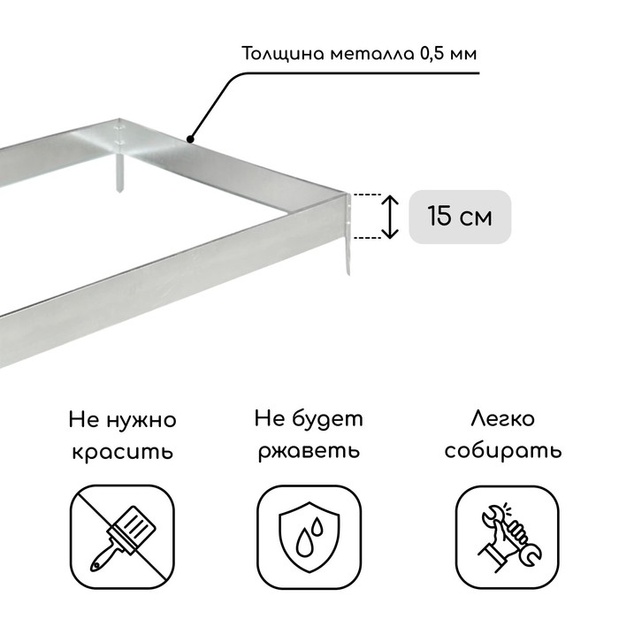 Грядка оцинкованная, 195 × 100 × 15 см, серая, Greengo