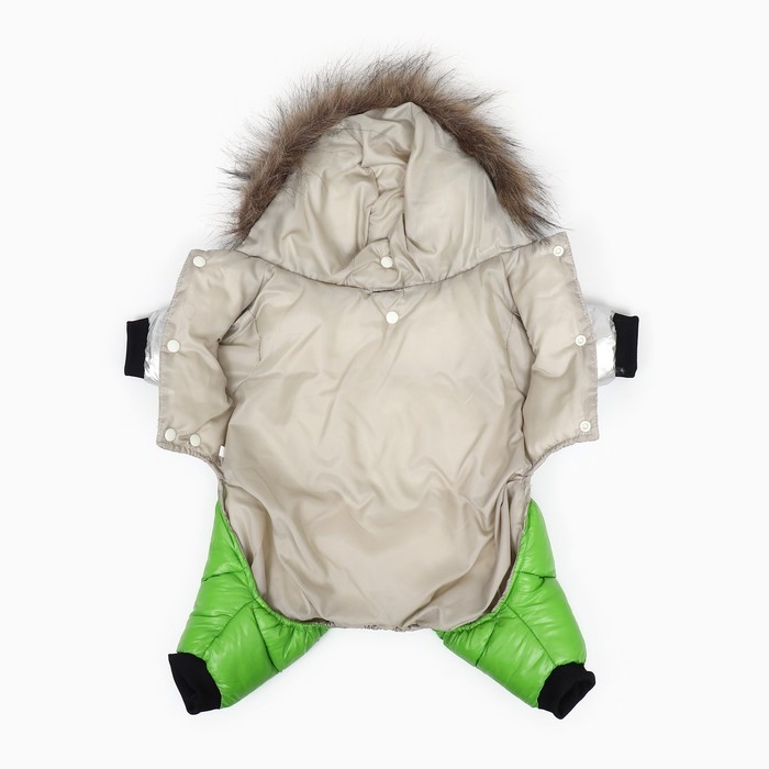 Внутри комбинезон утеплен синтепоном, обеспечивая максимальное тепло и уют,а снаружи выполнен из водоотталкивающей ткани дюспо ,что не даст промокнуть вашему питомцу в непогоду.Меховой капюшон добавляет стиля и уюта, а также обеспечивает дополнительную защиту от холода.