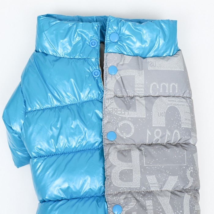 Комбинезон 'Ультра' в голубом цвете - ваш верный спутник в прохладную и ветреную погоду. Он изготовлен из прочного нейлона с светоотражающей тканью на спине, обеспечивая безопасность и видимость в темное время суток. Внутри комбинезон утеплен синтепухом, что сохраняет тепло и комфорт вашего питомца.