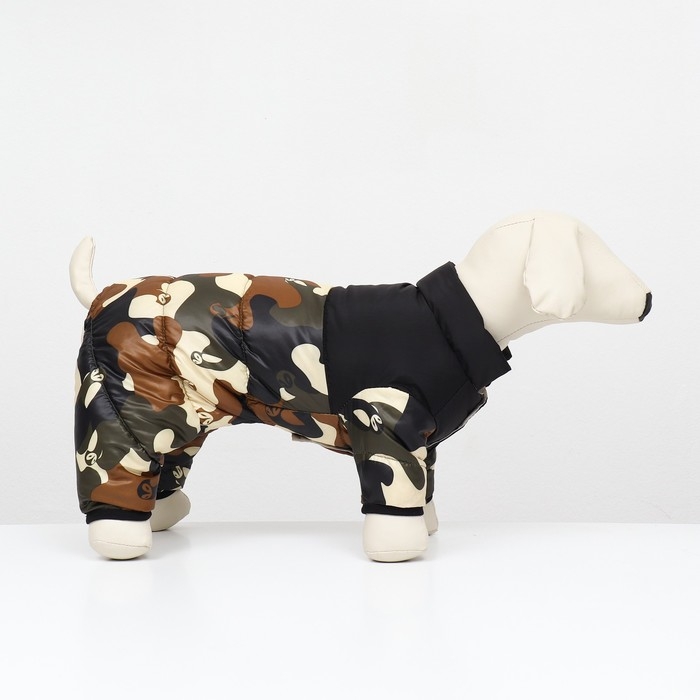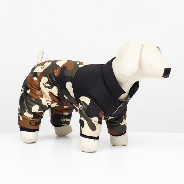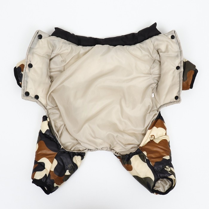 Комбинезон 'Умка' в камуфляжном исполнении - в нем вашему питомцу тепло и стильно. Снаружи он выполнен из нейлона, что обеспечивает защиту от ветра и влаги. Внутри комбинезон утеплен синтепухом, создавая комфорт и тепло в прохладные дни.