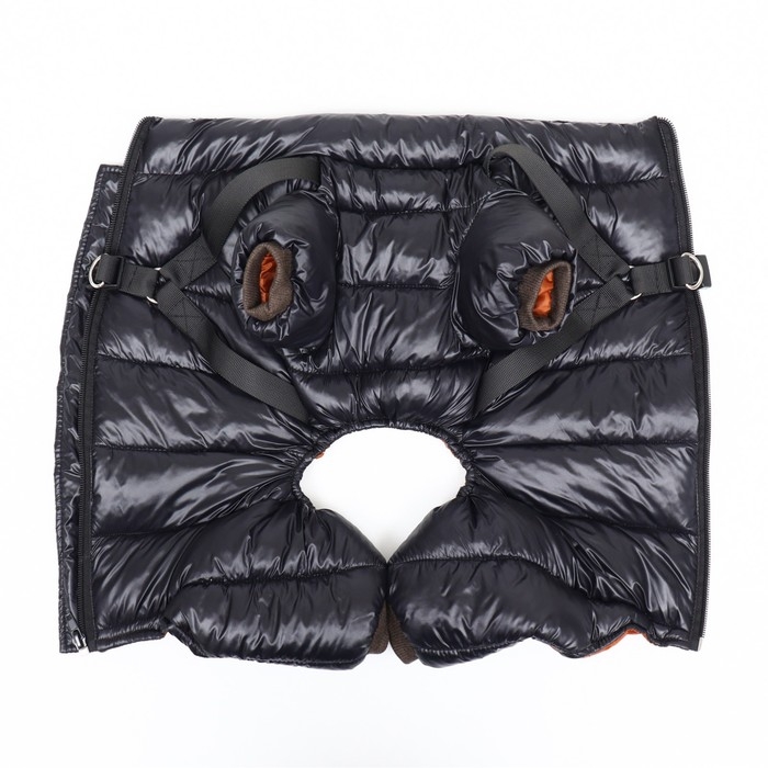 Комбинезон оснащен регулируемой шлейкой, которая позволяет точно подогнать комбинезон под размеры вашей собаки. На ножках комбинезона есть манжеты, они предназначены для того, чтобы обеспечить дополнительную защиту от холода и ветра, а также предотвратить попадание снега или грязи внутрь комбинезона. Манжеты плотно облегают ножки собаки, не ограничивая движения и обеспечивая комфортную посадку.