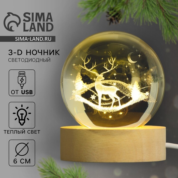 Светильник новогодний «Новый год: Олень», диам. 6 см