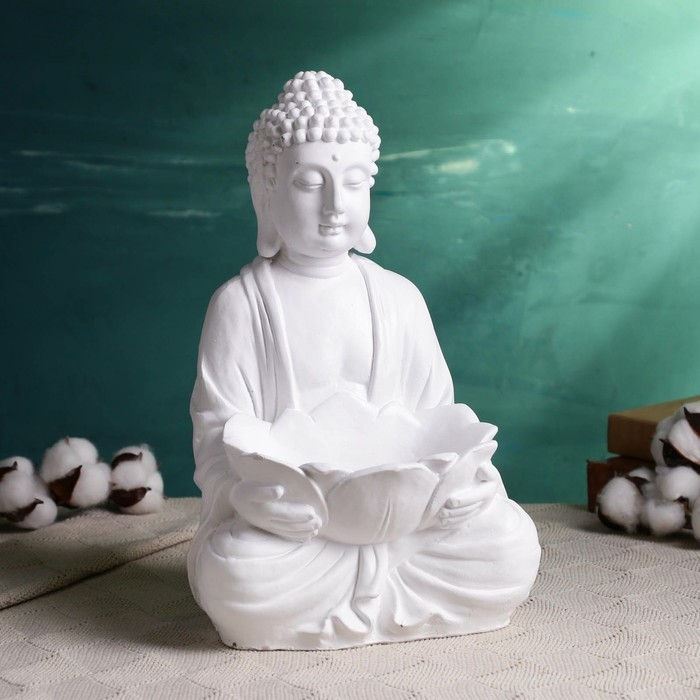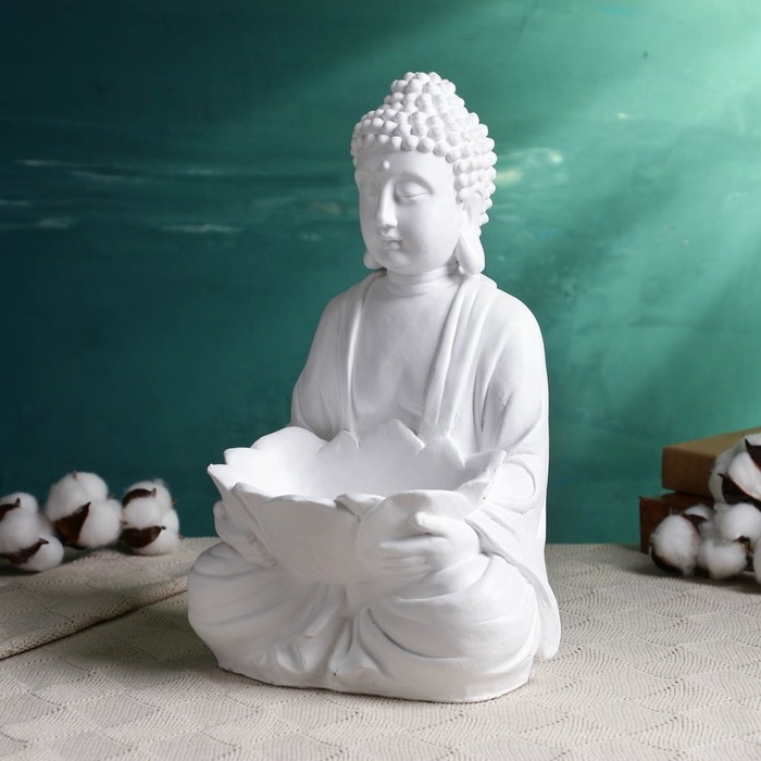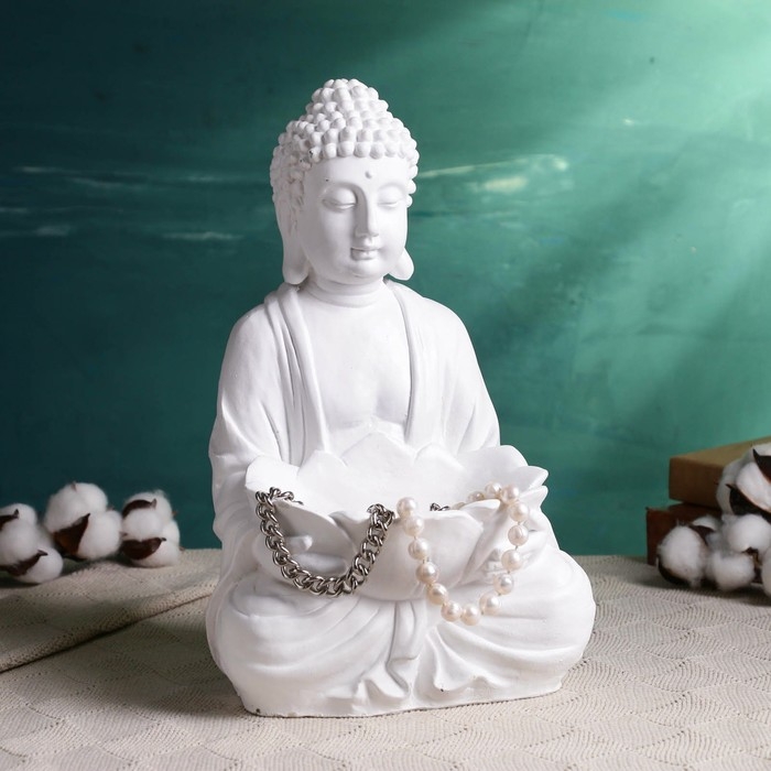 Подставка для мелочей "Будда с лотосом" белая, 19х17х32