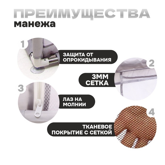 Манеж детский «Серый», 150х150х68 см