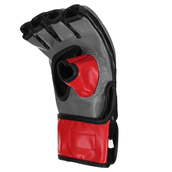 Перчатки для смешанных единоборств защищают кисти при ударах. Открытые фаланги позволяют бороться, не стесняя движений. Есть дополнительная защита большого пальца. Анатомический крой перчатки повторяет естественную форму кулака. Сетчатая вставка обеспечивает вентиляцию и влагоотведение. Широкий ремень с липучкой плотно прилегает к руке и предотвращает риск возникновения травмы запястья.