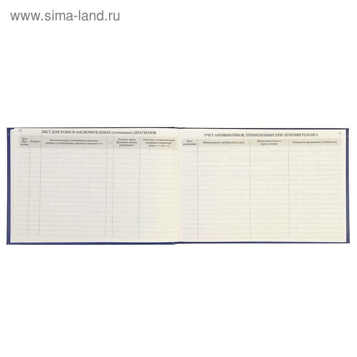 Медицинская карта ребёнка "История развития" А5, 205 х 150 мм, форма 112, синяя, твёрдая обложка, 96 листов
