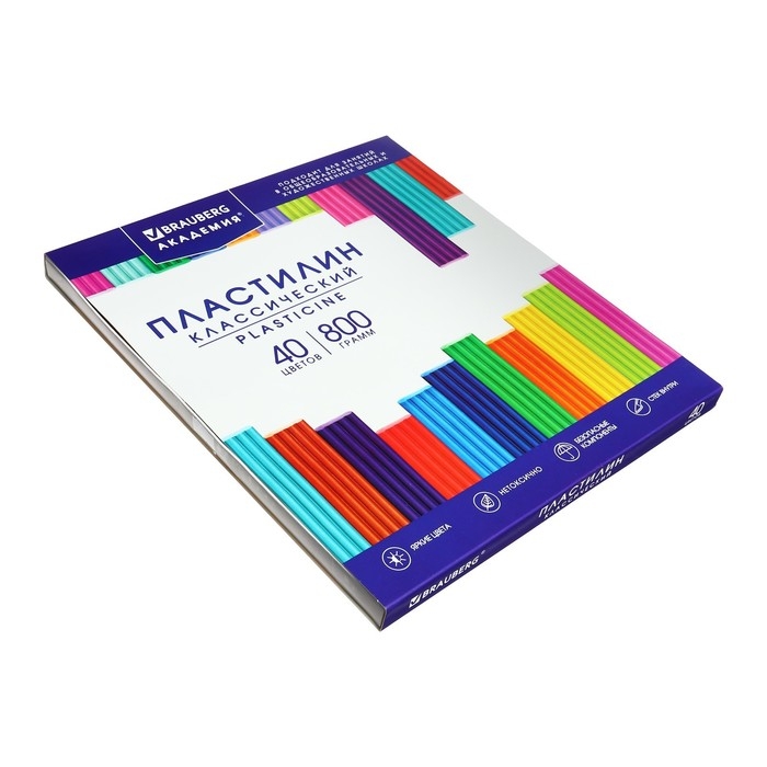 Пластилин 40цв 800 г BRAUBERG "АКАДЕМИЯ КЛАССИЧЕСКАЯ", со стеком.ВЫСШЕЕ КАЧЕСТВО