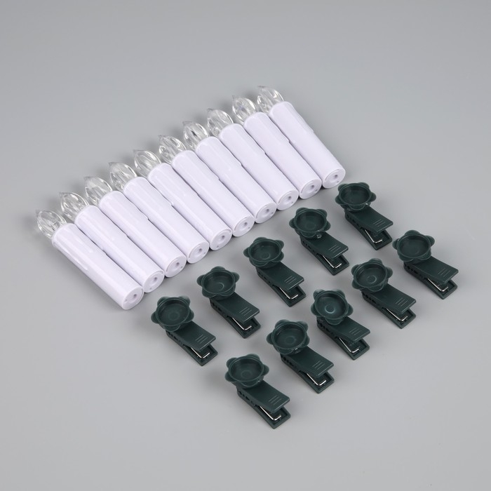Светодиодные свечи на прищепках 10 см, 10 штук, батарейки ААх1 (не в комплекте), пульт ДУ, свечение мульти (RGB)