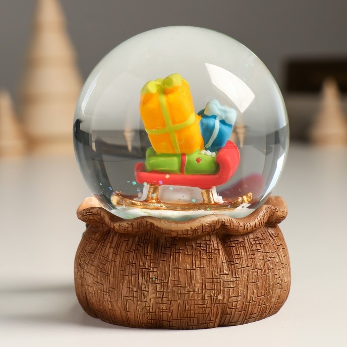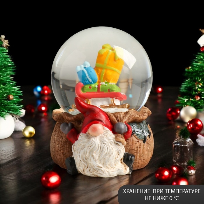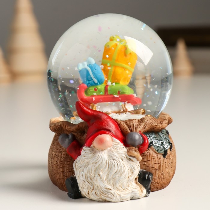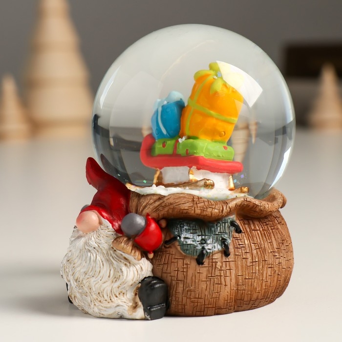 Сувенир полистоун водяной шар "Гном с мешком и сани с подарками" 7х8х9 см