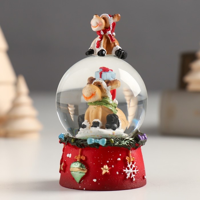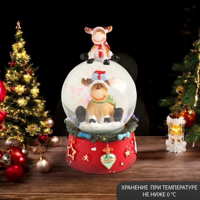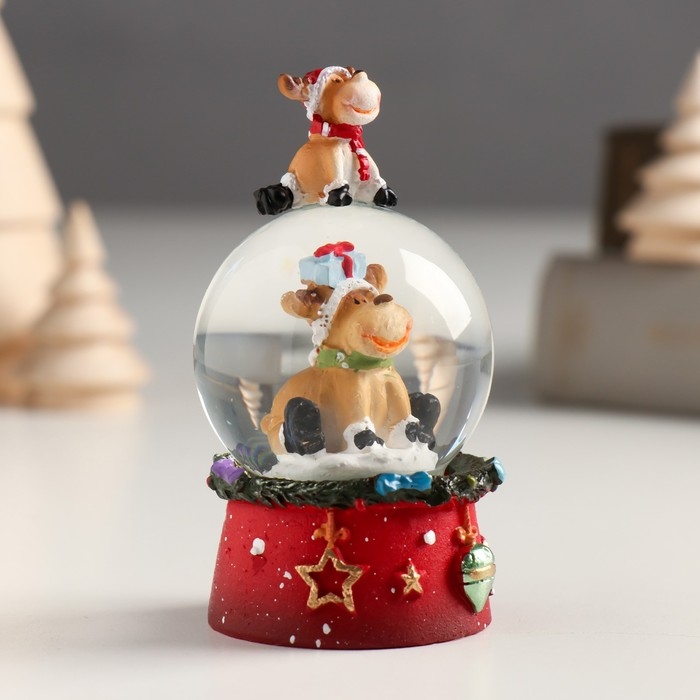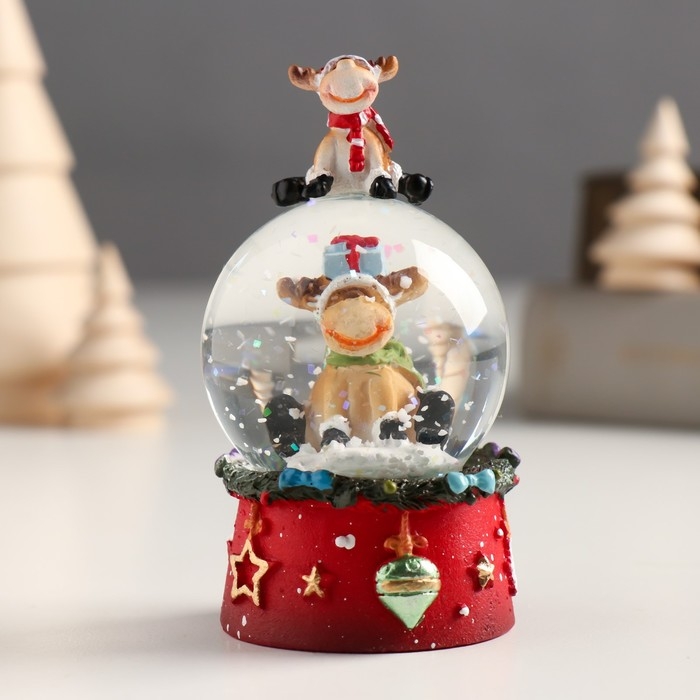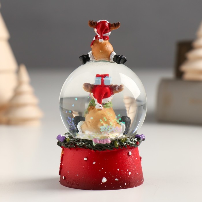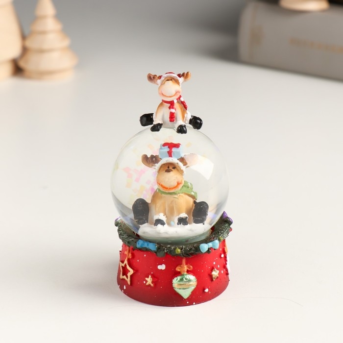 Сувенир полистоун водяной шар "Лосики - чехарда" 4,5х4,5х6,5 см