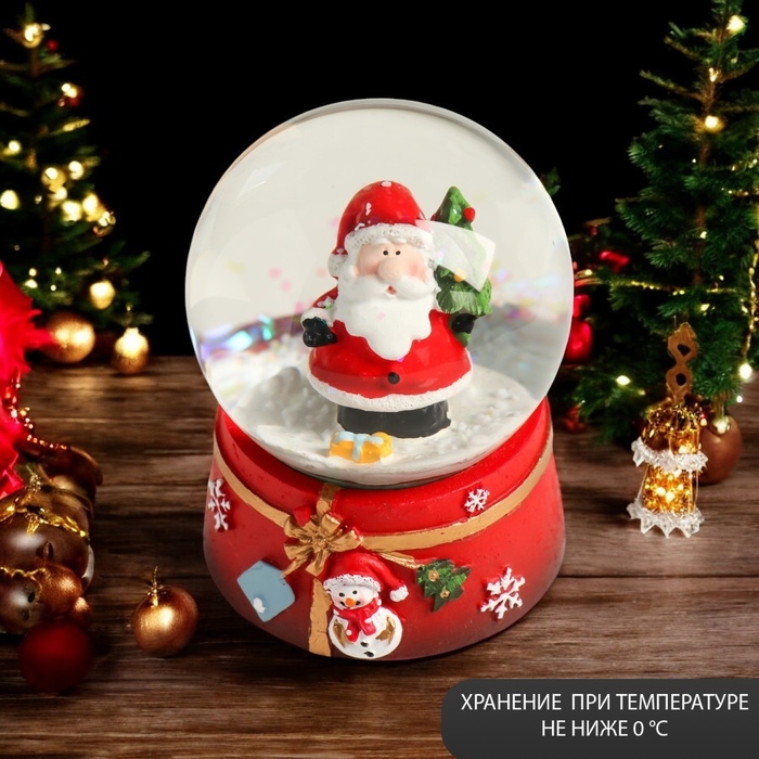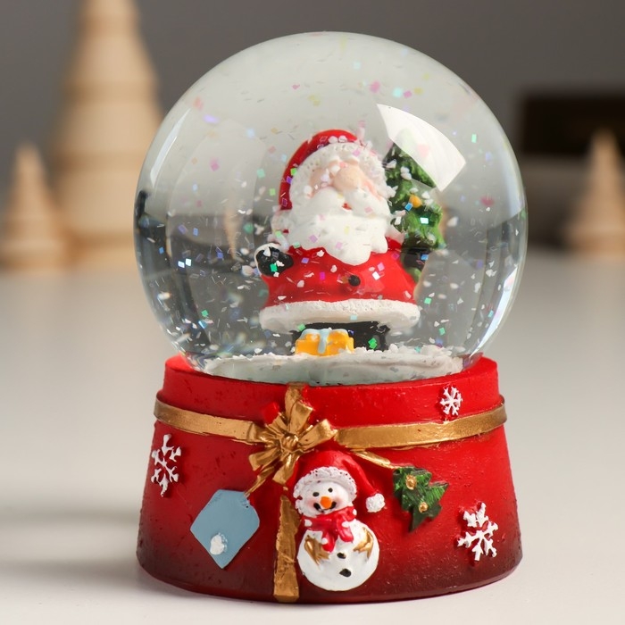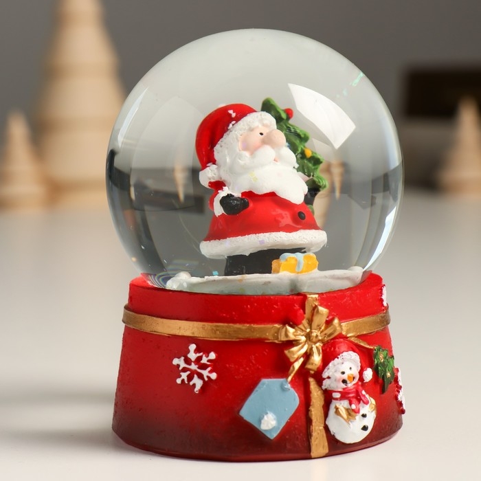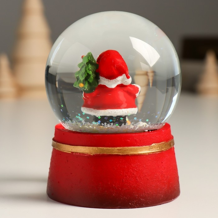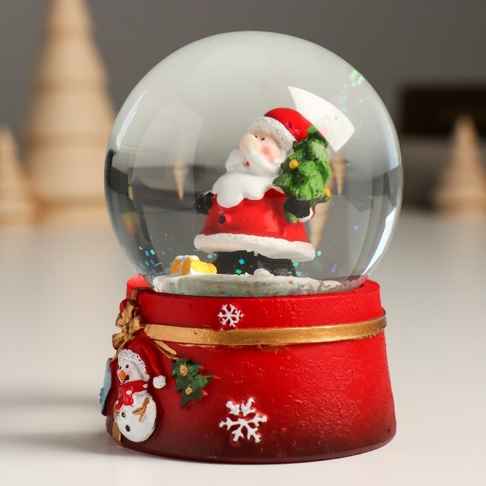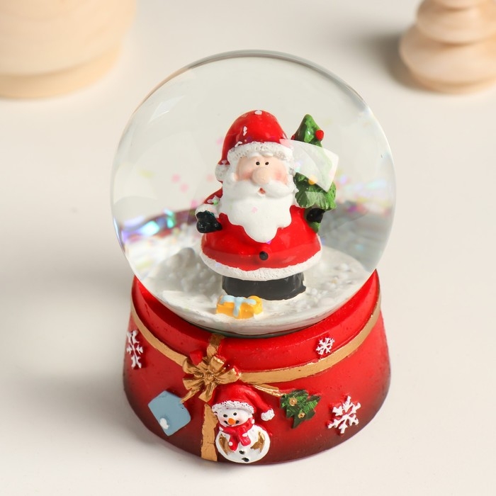 Сувенир полистоун водяной шар "Дедушка мороз с нарядной ёлкой" 7х8х9 см